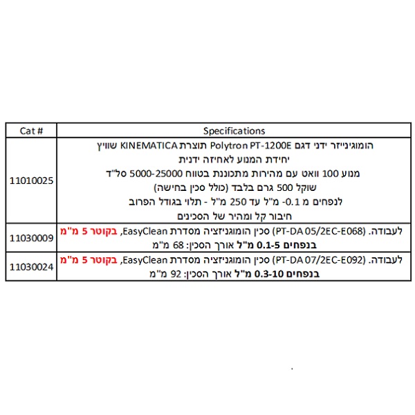 מודל:הומוגנייזר נייד כותש תאים Homogenizerיצרן:KINEMATICA Switzerlandמק"ט:Polytron PT-1200Eמצב:new
