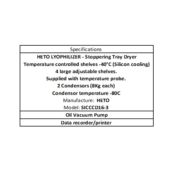 מודל:Stoppering Tray Dryer Lyophilizer לאופילייזר עם ביקבוקיצרן:HETOמק"ט:SICCCD16-3 16Kgמצב:Pre-owned